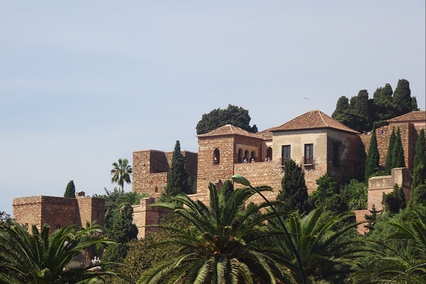 L’Alcazaba, forteresse des gouvernants musulmans de la ville, est le seul site hispano-musulman, encore original du XIe siècle en Espagne. La première enceinte fortifiée est un grand espace qui s’adapte parfaitement à la topographie de la colline et qui entoure complètement l’enceinte supérieure. Ici on remarque el Patio de Armas (la Cour d’Armes) avec un rempart pour la défense côtière dans le flanc sud et la tour qui communique avec la Coracha (chemin fortifié) sur le flanc oriental qui joint Gibralfaro.