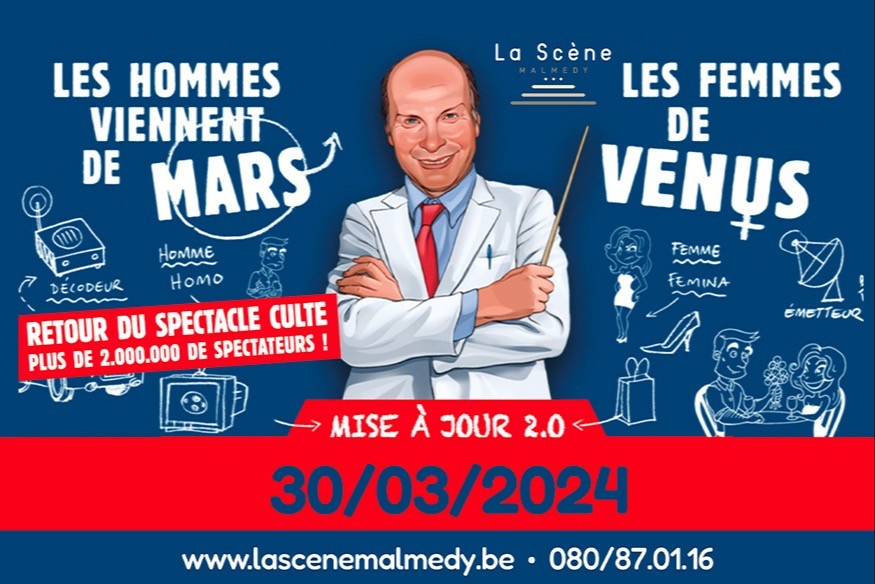 Le samedi 30 mars, découvrez « Les hommes viennent de Mars et les femmes de Vénus », le spectacle qui a déjà convaincu des millions de personnes.