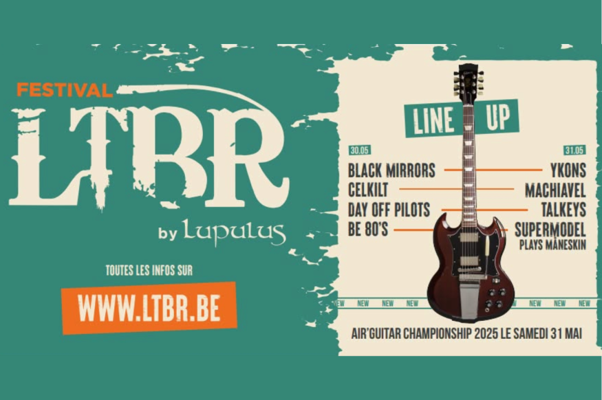 Pour sa 13e édition, le LTBR Festival met à l’honneur des artistes belges et francophones avec une programmation explosive et intergénérationnelle. Sur scène, des groupes reconnus comme Machiavel, Ykons ou Black Mirrors côtoieront de nouvelles pépites telles que Talkeys, Day Off Pilots ou Supermodel plays Maneskin. L’ambiance promet d’être festive avec, en bonus, des manches officielles du championnat belge d’Air Guitar entre chaque concert.