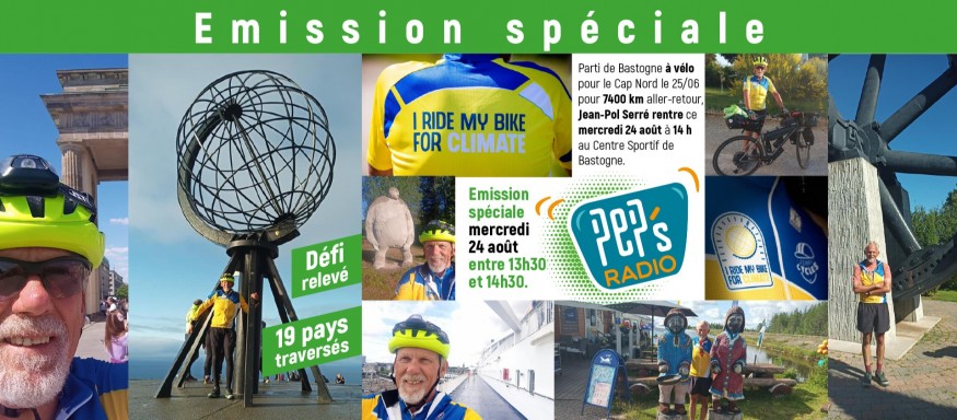 Jean-Pol Serré a débuté son périple de 7400 km à vélo vers le Cap Nord le dimanche 26 juin 2022 depuis Bastogne. Il a roulé pour I ride my bike for climate.