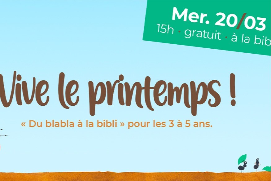 Vous ne savez pas quoi faire avec les enfants cette après-midi, j’ai le bon plan parfait pour vous puisque ce matin nous parlons du Blabla à la bibli "Vive le printemps" qui se déroule cette après-midi à 15h à la Bibliothèque publique de Vielsalm.