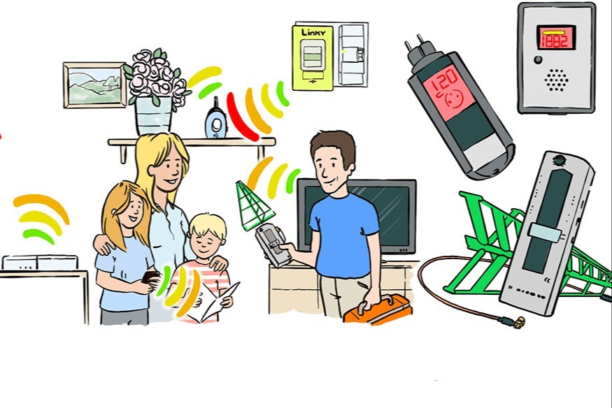 Les personnes électrohypersensibles (EHS) sont sensibles aux ondes hautes fréquences émises par des antennes relais de la téléphonie mobile, téléphones portables, wifi, compteurs communicants, objets connectés... et aux basses fréquences émises par des lignes électriques, des radiateurs électriques, des plaques de cuisson, ...