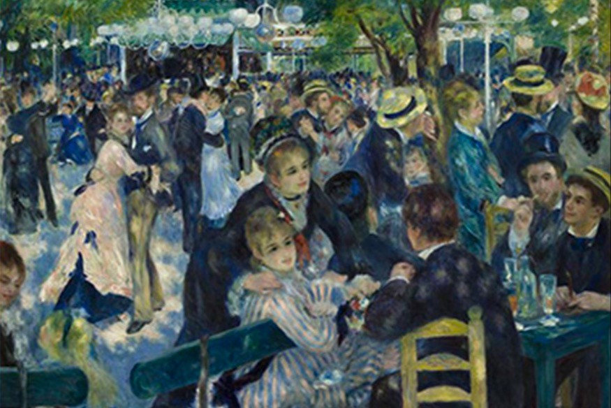 En 1862, Renoir rencontre Monet et Sisley. En 1875, il loue un atelier sur la butte Montmartre à Paris et y peint le célèbre « Bal du Moulin de la Galette », exposé au musée d'Orsay à Paris. Renoir aime peindre la foule, le théâtre et l'opéra.