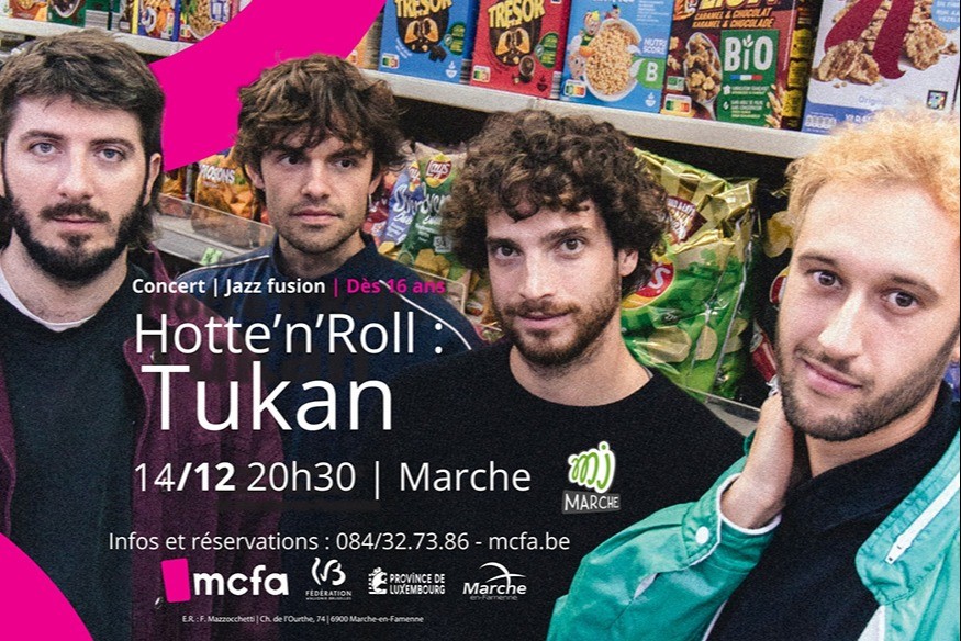 Ce samedi 14 décembre à 20h30, c'est le retour du Hotte'n'Roll, un évènement caritatif organisé par la MJ de Marche avec le soutien de la MCFA pour collecter des jouets au profit des enfants défavorisés. Au programme, assistez aux concerts du quatuor bruxellois Tukan et du groupe FOVW originaire de Saint-Léger. Les concerts auront lieu à la Maison de la Culture Famenne-Ardenne et une afterparty sera assurée par Denis Muric au Tiroir des Saveurs, la brasserie de la MCFA.